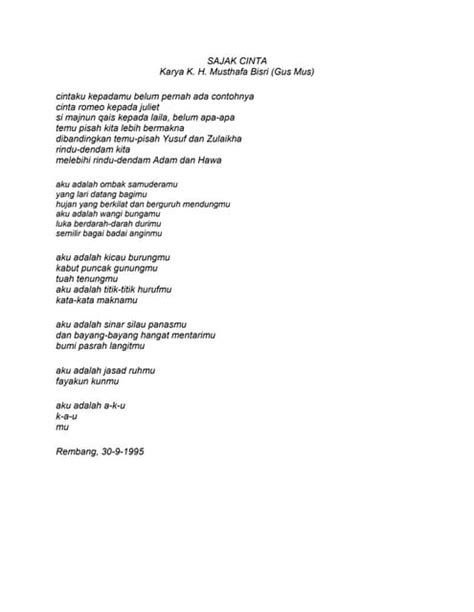 1. unsur intrinsik dan ekstrinsik dari puisi sajak cinta kary gus Mus