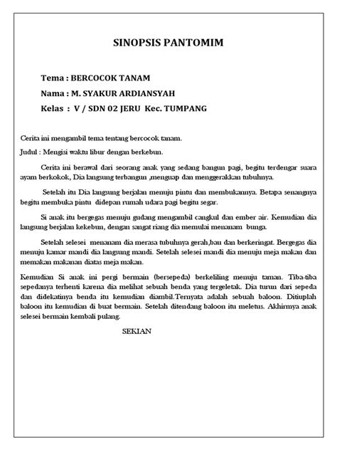 3. sinopsis pantomim lucu untuk sd tolong dijawab secwpatnya ya...bagi yg sudah berpengalaman juga malah bagus