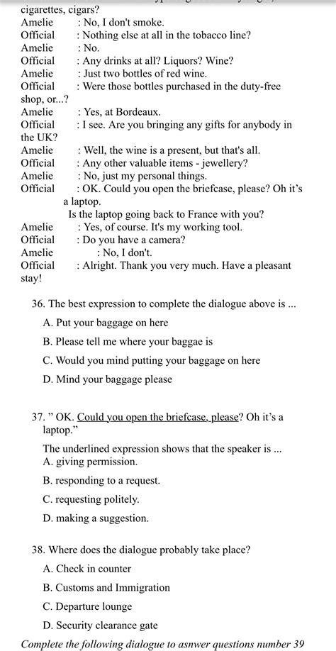Karena soal di atas tidak dilengkapi dengan dialog yang ditanyakan, saya hanya bisa menerjemahkannya.